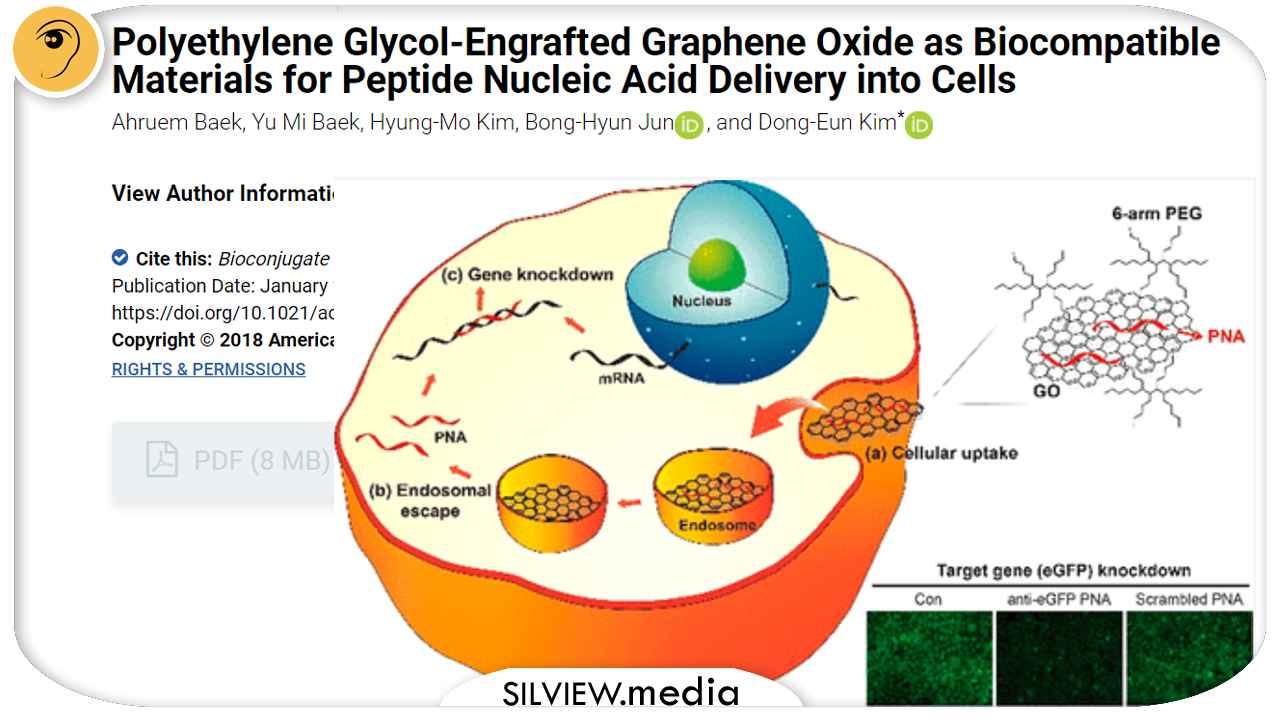 Graphene oxide (GO) is known to strongly bind single-stranded nucleic acids with fluorescence quenching near the GO surface. However, GO exhibits weak biocompatibility characteristics, such as low dispersibility in cell culture media and significant cytotoxicity. To improve dispersibility in cell culture media and cell viability of GO, we prepared nanosized GO (nGO) constructs and modified the nGO surface using polyethylene glycol (PEG-nGO). Single-stranded peptide nucleic acid (PNA) was adsorbed onto the PEG-nGO and was readily desorbed by adding complementary RNA or under low pH conditions. PNA adsorbed on the PEG-nGO was efficiently delivered into lung cancer cells via endocytosis without affecting cell viability. Furthermore, antisense PNA delivered using PEG-nGO effectively downregulated the expression of the target gene in cancer cells. Our results suggest that PEG-nGO is a biocompatible carrier useful for PNA delivery into cells and serves as a promising gene delivery tool.